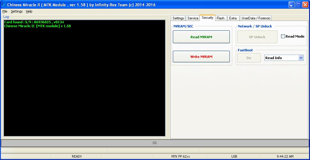 MTK Read Info MTK 100% Firmware Read (Scatter + Bin) MTK Write Flash MTK Google Accounts Lock (FRP) MTK 100% Format MTK Resolve DL Mode MTK {Networking/ SP-Unlock MTK Fast Boot Open Loader MTK Fast Boot Secure Boot Loader MTK Write Preloader MTK Repair Unknown BaseBand MTK Full Flash Erase MTK Smart AV (Monkey Virus) MTK Read Pattern Lock Save User Data MTK Reset User Locks MTK Reset Privacy Lock User Data Safe. Write NVRAM/Read NVRAM RIGHT/IMEI Repair Security. Format FS – FRP/User Settings/Privacy Lock (mixed/unique mode). Memory Storage Tool. Write/Read Factory Scatter File NAND Supported.
